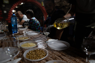 с участниками сыро-винной поездки за дегустацией вина и сыра.