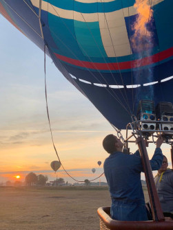 Перед взлетом инструктор будет проверять местные признаки погоды и если все нормально, то начинаем наполнять шар горячим воздухом.