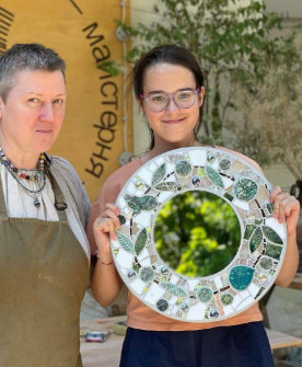 Мастер-класс по мозаике проходит в уютной студии в Киеве, которая имеет доступ к безопасному укрытию в доме подвального помещения.