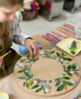 Опытный художник обучает всем этапам создания мозаичной ручной работы: выбор эскиза, нарезка материала, выкладка на форме и затирка швов. На протяжении обучения владельцы сертификата узнают о различных техниках и приемах мозаичного искусства и смогут воплотить их в жизнь. Мастера студии откроют все тонкости и секреты создания хорошего и качественного мозаичного изделия.