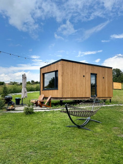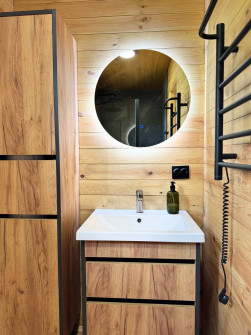 Гости заселяются в уютный домик для двоих в глэмпинге, расположенном возле озера, внутри которого есть всё необходимое для комфортного проживания. Также в домике установлена зарядная станция.
