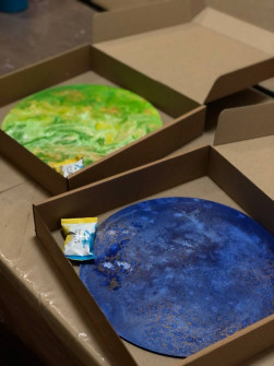 У вартість входить створення однією людиною 2 картин розміром 30 см (кругле або квадратне полотно на вибір) різними техніками.