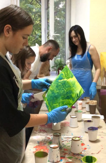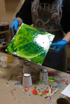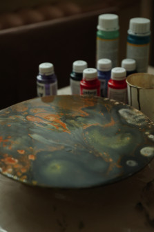 У затишній арт студії Полтави досвідчений наставник покаже базові техніки Fluid Art, допоможе з підбором кольорів і покаже, як працювати з фарбами без пензлів. Ви отримаєте повне навчання, усі матеріали включено.