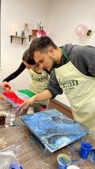 Сертифікат "Майстер-клас флюїд арт на полотні у Києві" – це можливість створити власноруч унікальну абстрактну картину! Жодних чітких ліній чи обмежень – тільки творчість, розслаблення та захопливий експеримент.
