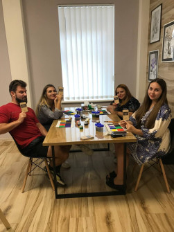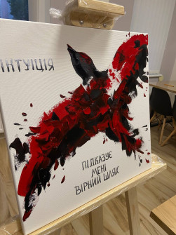 З вибором афірмації вам можуть допомогти спеціальні карти. Картину також можна подарувати близькій людині. Це буде безцінний подарунок на все життя. А можна взяти близьку людину і прийти малювати разом. Всі матеріали для створення власного шедевра ми надаємо. Бокал ігристого для підвищення настрою теж включено.