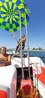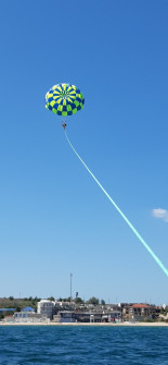 Наш парасейлінг найбезпечніший на узбережжі, через те, що запуск і приземлення відбувається з/на майданчик катера. Парасейлінг - це найкращі враження!