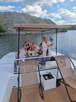 В вашому використанні буде простора палуба для відпочинку і фото, затишна зона відпочинку з м'якими диванчиками, музика і відпочинок в чудовій компанії.