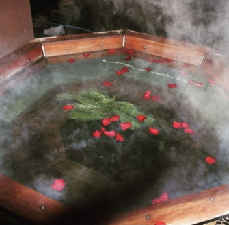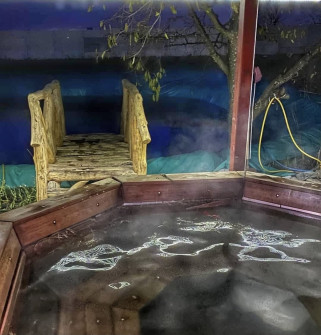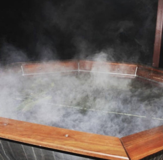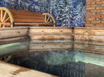Насолоджуйтесь блаженством димлячого гарячого чана просто неба і ароматом хвої з цілющими травами.