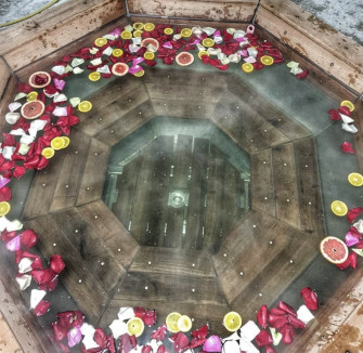 У вартість входить: чан, передбанник, стіл, стільці, роздягальня, душ. Є можливість зануритися в красивому штучному озері після чана. Мінімальний запис за 2 доби.